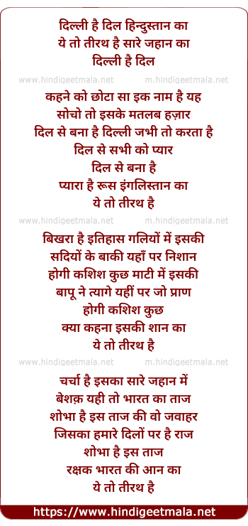 Lyrics of Dilli Hai Dil Hindustan Ka - दिल्ली है दिल हिन्दुस्तान का