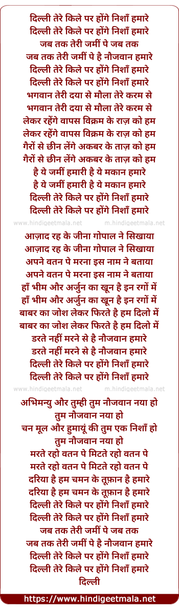 Lyrics of Dilli Tere Kile Par - दिल्ली तेरे किले पर