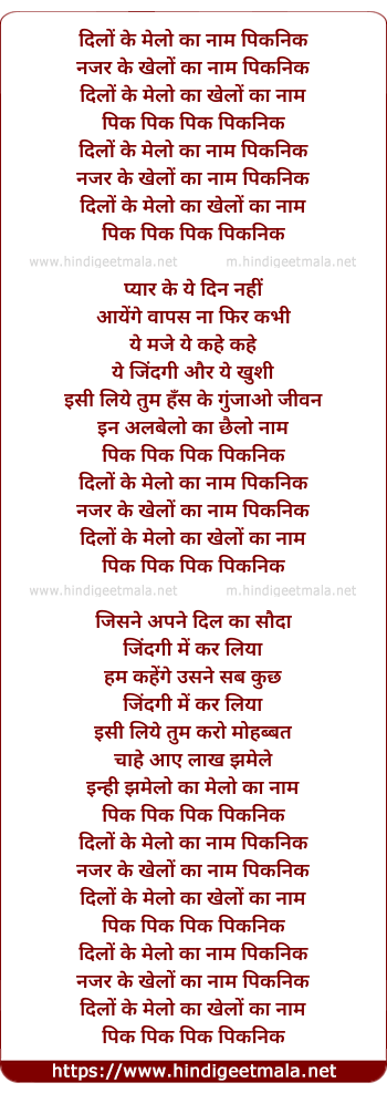 Lyrics of Dilo Ke Melo Ka Naam Piknik - दिलों के मेलो का नाम पिकनिक