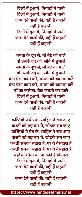 Lyrics of Dilo Me Duaaye (Male) - दिलों में दुआयें, निगाहों में पानी