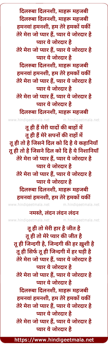 teraa meraa jo pyaar hai, pyaar ye jordaar hai