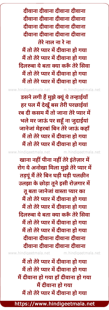 Lyrics of Dilruba Ye Bata - दीवाना दीवाना दीवाना दीवाना
