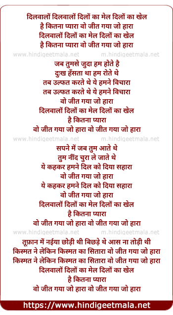 ''Dilwalo Dilonka Mel, Dilonka Khel Hai Kitna Pyara, Wo Jeet Gaya Jo Hara''
