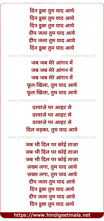 Lyrics of Din Dooba Tum Yaad Aaye - दिन डूबा तुम याद आये