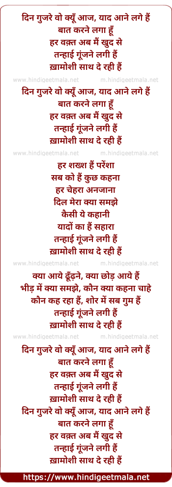 Lyrics of Din Guzre Wo - दिन गुजरे वो क्यूँ आज, याद आने लगे हैं