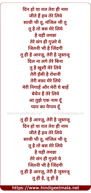 Lyrics of Din Ho Ya Raat Tera Hi Naam - दिन हो या रात तेरा ही नाम