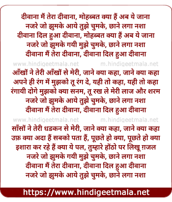 Lyrics of Divana Mai Tera Divana, Divana Dil Hua Divana - दीवाना मैं तेरा दीवाना, दीवाना दिल हुआ दीवाना