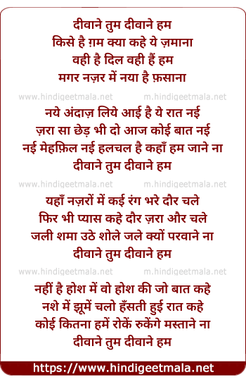 Lyrics of Divane Tum Divane Ham Kise Hai Ghum Kya - दीवाने तुम दीवाने हम किसे है ग़म क्या