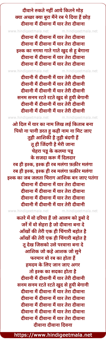 Lyrics of Diwana Mai Diwana - दीवाना मैं दीवाना