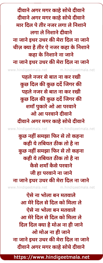 Lyrics of Diwaane Agar Magar Kahe Soche - दीवाने अगर मगर काहे सोचे