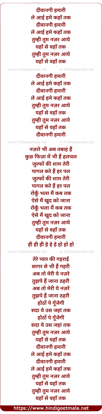 Lyrics of Diwangi Hamari Le Aayi Hame Kaha Tak - दीवानगी हमारी ले आई हमे कहाँ तक
