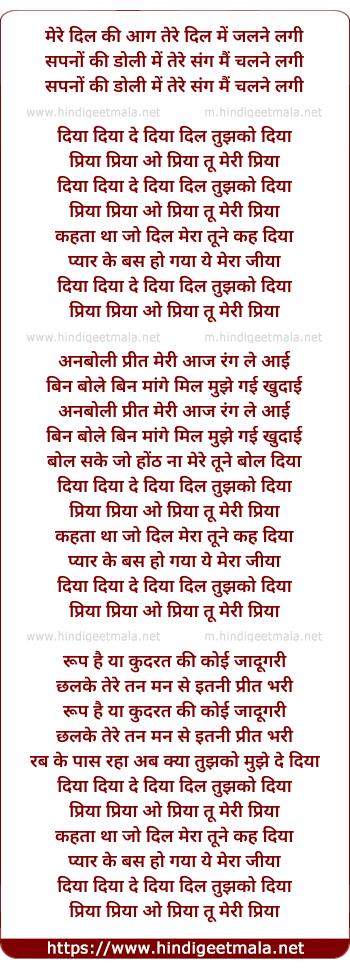Lyrics of Diya Diya Dil Tujhko - दिया दिया दिल तुझको