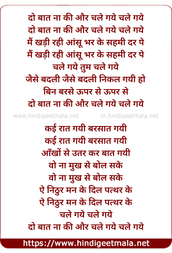 Lyrics of Do Baat Na Ki Aur Chale - दो बात ना की और चले गये चले गये