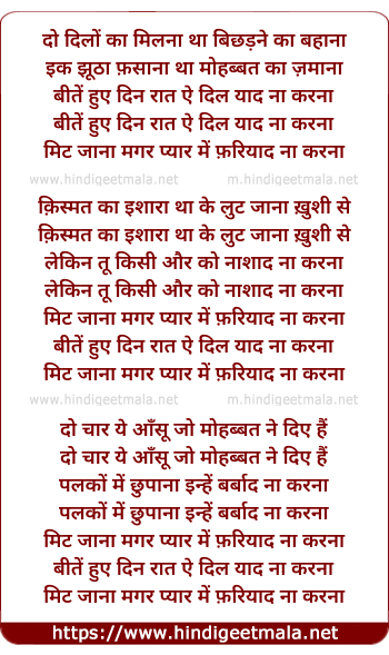 Lyrics of Do Dilo Kaa Milna Tha - दो दिलों का मिलना था