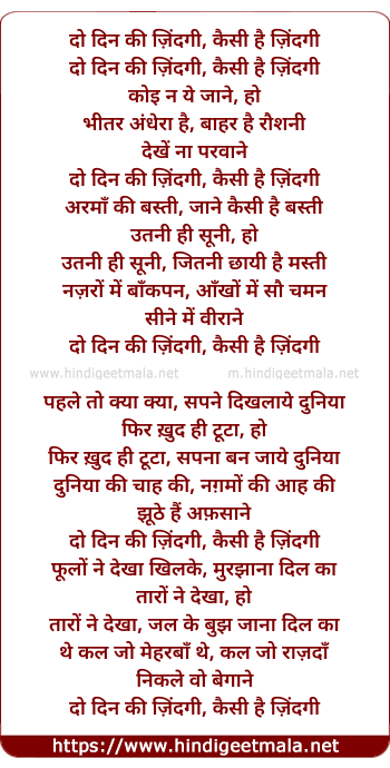 Lyrics of Do Din Ki Zindagi, Kaisi Hai Zindagi - दो दिन की ज़िंदगी, कैसी है ज़िंदगी