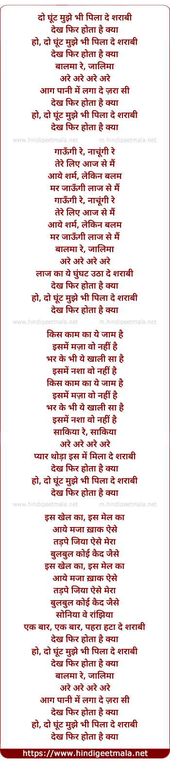 Lyrics of Do Ghoont Mujhe Bhi Pila De Sharabhi - दो घूंट मुझे भी पिला दे शराबी