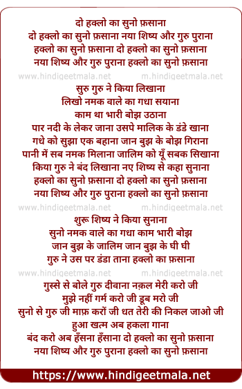 Lyrics of Do Haklo Ka Suno Fasana - दो हक्लो का सुनो फ़साना