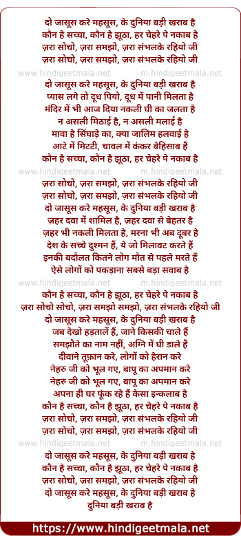 Lyrics of Do Jasoos Kare Mehsoos - दो जासूस करे महसूस