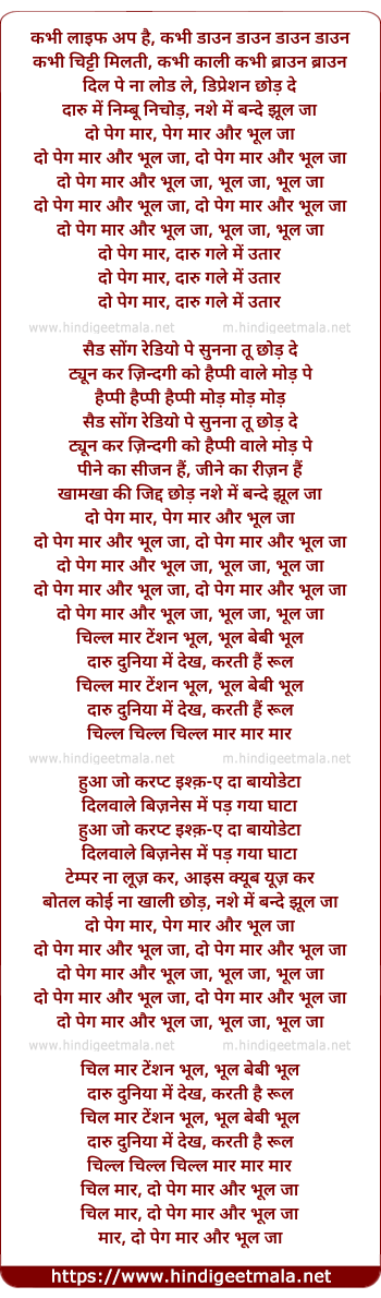 Lyrics of Do Peg Maar Aur - दो पेग मार और