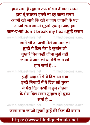 Lyrics of Don T Break My Heart - हाय समां है सुहाना उफ़ मौसम दीवाना सनम
