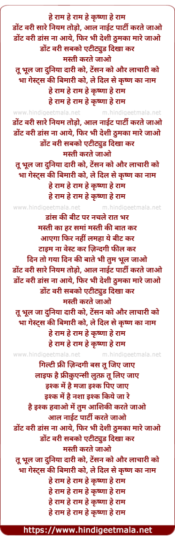 Lyrics of Don T Worry (Hey Ram) (Remix) - हे राम हे राम हे कृष्णा हे राम