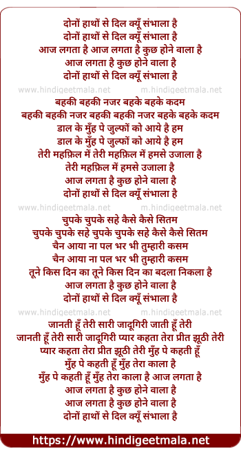 Lyrics of Dono Hatho Se Dil Kyo Sambhala Hai - दोनों हाथों से दिल क्यूँ संभाला है