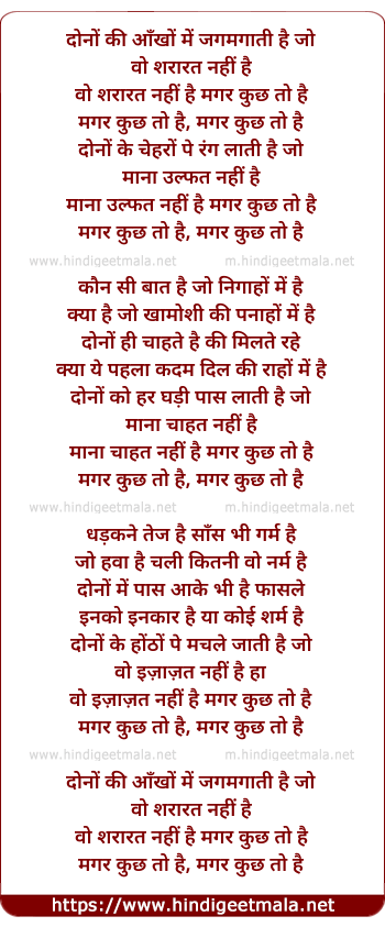 Lyrics of Dono Ki Aankhon Mein Jagmagaati Hai Jo - दोनों की आँखों में जगमगाती है जो