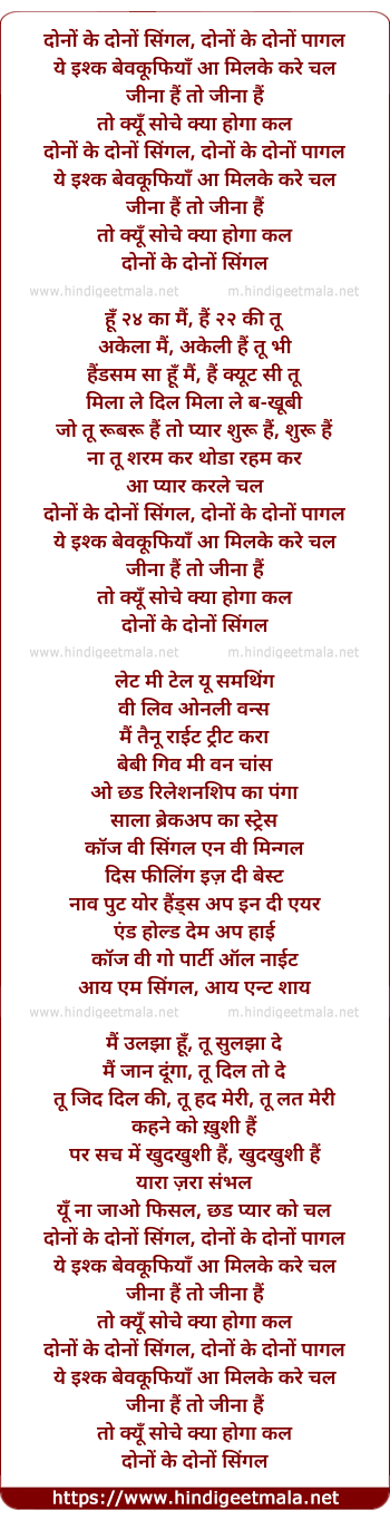 Poetic Translation - Lyrics of Dono Single (Remix) - दोनों के दोनों सिंगल, दोनों के दोनों पागल