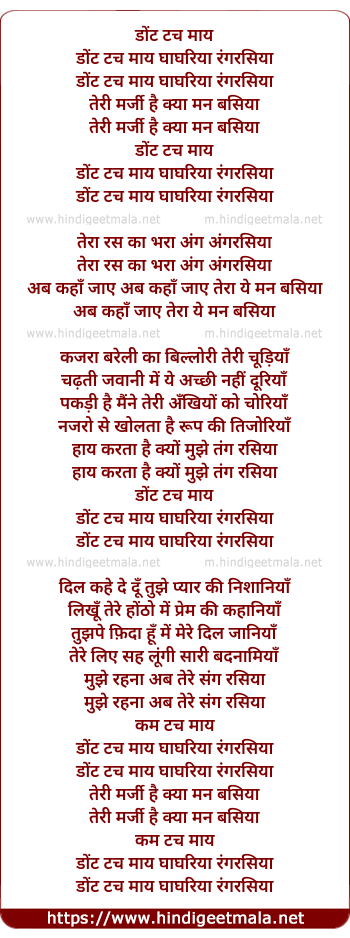 Lyrics of Don't Touch My Ghaghariya - डोंट टच माय घाघरिया