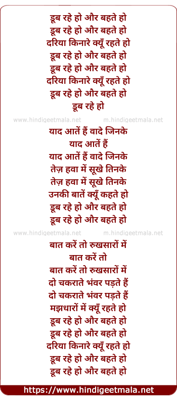 Lyrics of Doob Rahe Ho - डूब रहे हो और बहते हो
