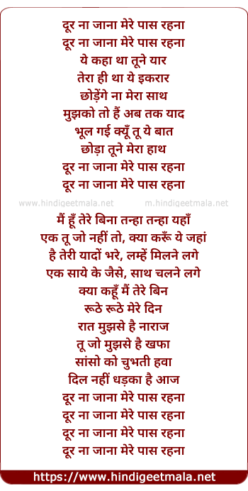 Lyrics of Door Na Jana, Mere Paas Rhena - दूर ना जाना मेरे पास रहना