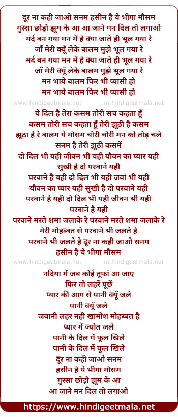 Lyrics of Door Na Kahin Jao Sanam, Hasin Hai Ye Bhiga Mausam - दूर ना कही जाओ सनम, हसीन है ये भीगा मौसम