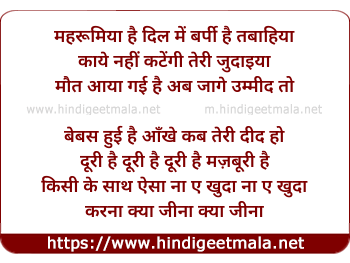 Lyrics of Doori Hai Majboori Hai - महरूमिया है दिल में बर्पी है तबाहिया