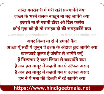 Lyrics of Dost Ghamkhwari Me Meri - दोस्त गमख्वारी में मेरी सही फ़रमावेंगे क्या