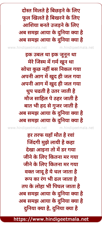 Poetic Translation - Lyrics of Dost Milte Hain Bichhadne Ke Liye - दोस्त मिलते है बिछड़ने के लिए
