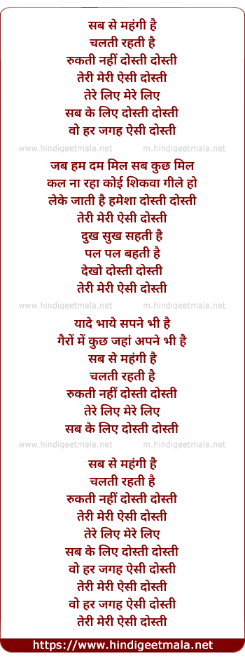 Poetic Translation - Lyrics of Dostee - दोस्ती