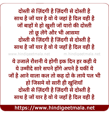 Lyrics of Dosti Se Zindagi Hai - दोस्ती से ज़िंदगी है