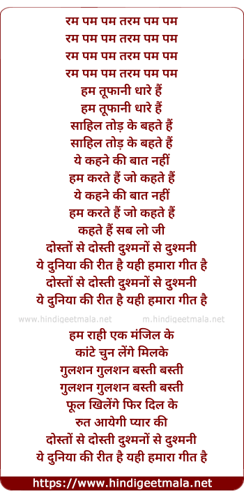 Poetic Translation - Lyrics of Dosto Se Dosti Dushmano Se Dushmani (Duet) - रम पम पम तरम पम पम