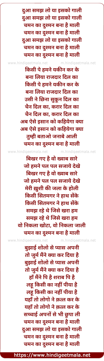 Lyrics of Dua Samajh Lo Ya Isko Gaali - दुआ समझ लो या इसको गाली