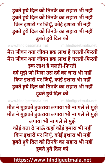 Lyrics of Dubate Huye Dil Ko Tinake Kaa Sahaaraa Bhi Nahin - डूबते हुये दिल को तिनके का सहारा भी नहीं