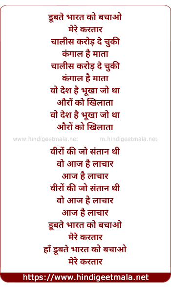 Lyrics of Dubte Bharat Ko Bachao - डूबते भारत को बचाओ