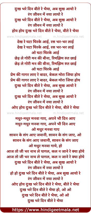 Lyrics of Duhkh Bhare Din Bite Re Bhaiyaa - दुःख भरे दिन बीते रे भैया