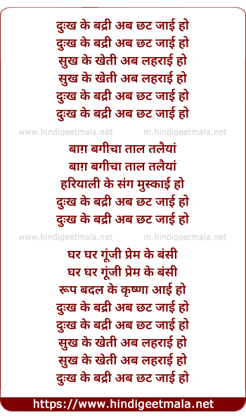 Lyrics of Dukh Ke Badri Ab Chhat Jayi Ho - दुःख के बद्री अब छट जाई हो