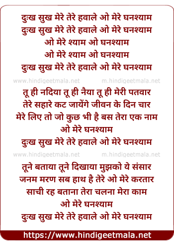 Lyrics of Dukh Sukh Mere Tere Hawale Ho Mere Ghanshyam - दुःख सुख मेरे तेरे हवाले ओ मेरे घनश्याम