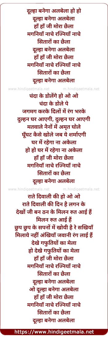 Lyrics of Dulha Banega Albela - दूल्हा बनेगा अलबेला
