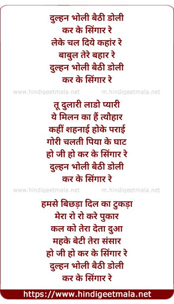 Lyrics of Dulhun Bholi Baithi Doli Kar Ke Singar Re - दुल्हन भोली बैठी डोली कर के सिंगार रे