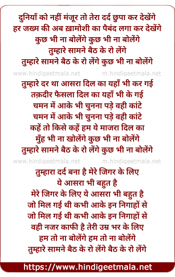 Lyrics of Dunia Ko Nahi Manzur To Tera Dard - दुनियाँ को नहीं मंजूर तो तेरा दर्द