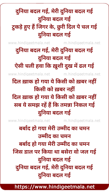 Lyrics of Duniya Badal Gayi - दुनिया बदल गई