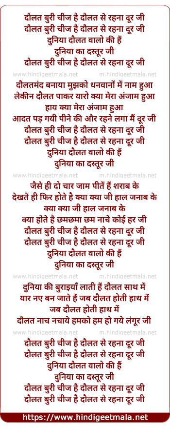 Lyrics of Duniya Daulat Walo Ki Hai - दुनिया दौलत वालो की हैं