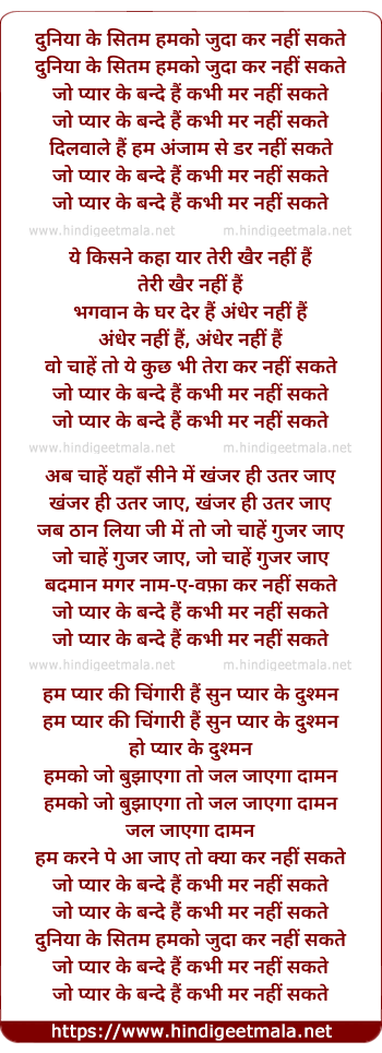 Lyrics of Duniya Ke Sitam - दुनिया के सितम
